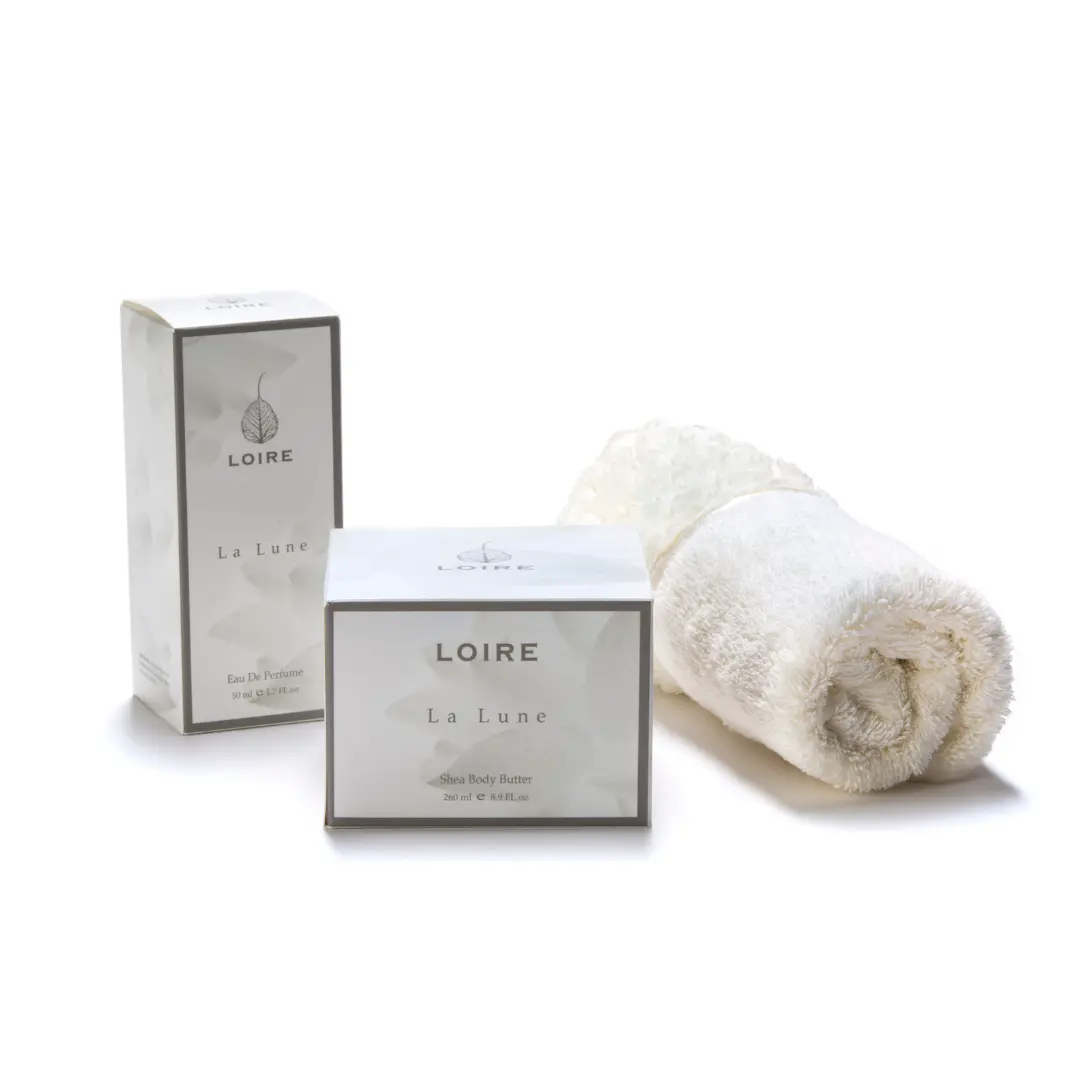 המארז מכיל בושם, חמאת שיאה ומגבת.