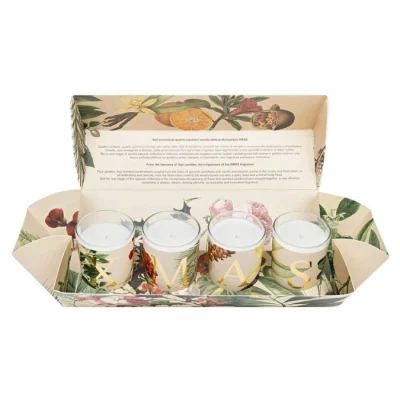 טלק ומאסק | אקווה מרין ומלח ים | אמבר ועץ | נרולי ויסמין | תפוז ברגמוט ולילי | גרניום ומרווה | אמבר ועץ | יסמין ופלפל אדום | תפוז טארוקו וגוג'י ברי | לבנדר וקורנית | קוקוס ושזיף מירבל |